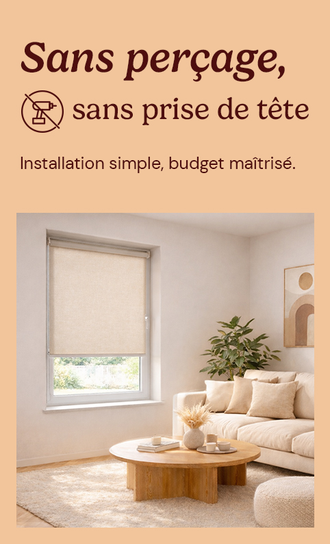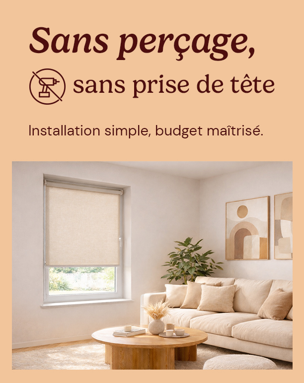 Nos modèles sont compatibles avec une installation sans perçage sur l'ouvrant de l'ouverture. Idéal pour la location où il est parfois interdit de percer les murs et plafonds. Les supports à clip se fixent directement sur le cadre de la fenêtre sans aucun outil et ne laissent aucune trace lors du retrait.