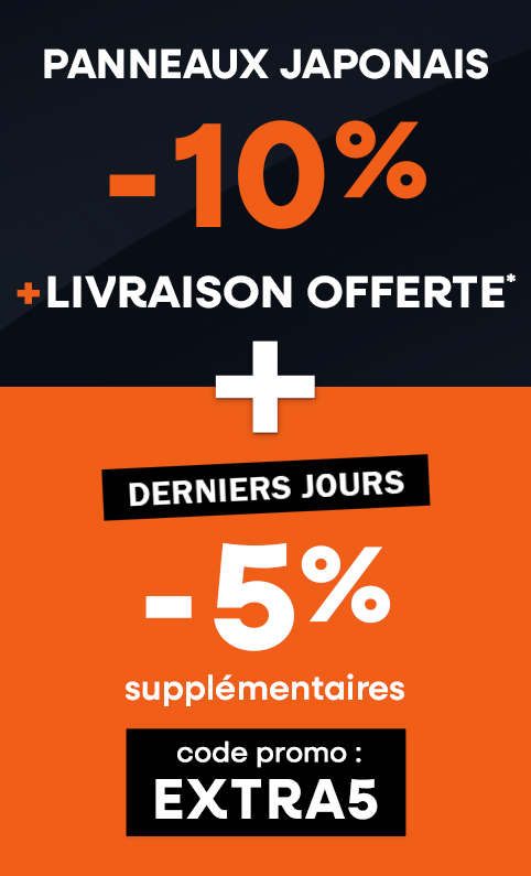 Toutes les dimensions sont disponibles pour vos panneaux japonais : 45 cm, 50 cm, 60 cm, 70 cm, 100 cm et plus large encore grâce à la configuration sur mesure proposée par Stores-Discount. Plusieurs types de toiles sont accessibles : occultante, tamisante, contre la chaleur, voile, screen, m1 (résiste au feu)... Montage facile en moins de 15 minutes !