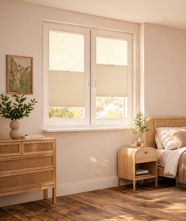 Le store plissé jour nuit vous permet de maîtriser la lumière selon vos envies. Grâce à sa toile tamisante et sa toile occultante, profitez d’une lumière douce en journée, d’une obscurité totale la nuit ou combinez les deux pour un confort sur-mesure. Élégant et fonctionnel, il s’intègre facilement dans toutes les pièces de la maison.