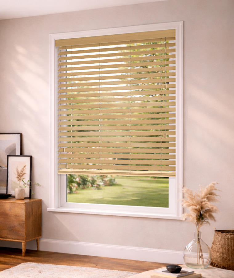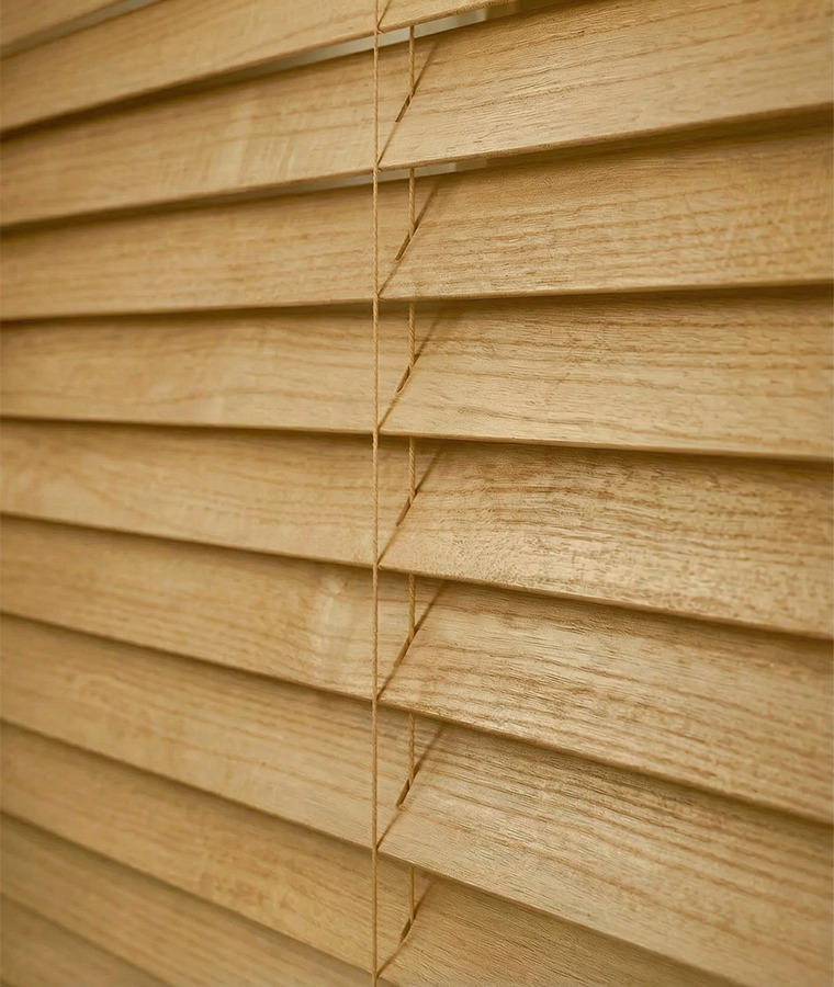 Les lames 50mm du store vénitien bois sont d'un bois léger et qualitatif souvent utilisé dans l'ameublement, ce qui en fait un store résistant.