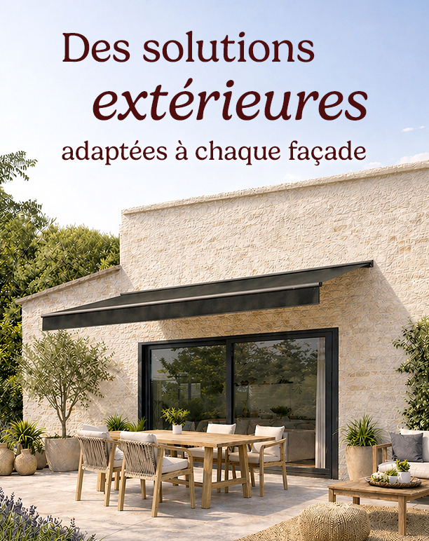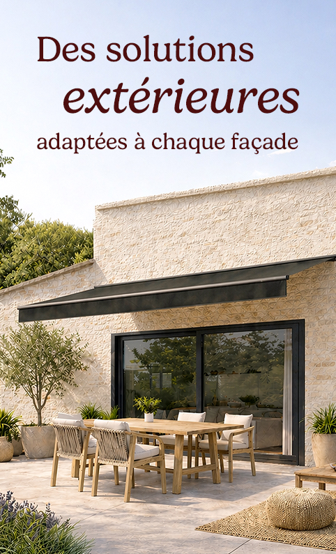 Design et protection Haut de Gamme. Pour les très grands espaces. Toile DICKSON et Motorisation SOMFY.